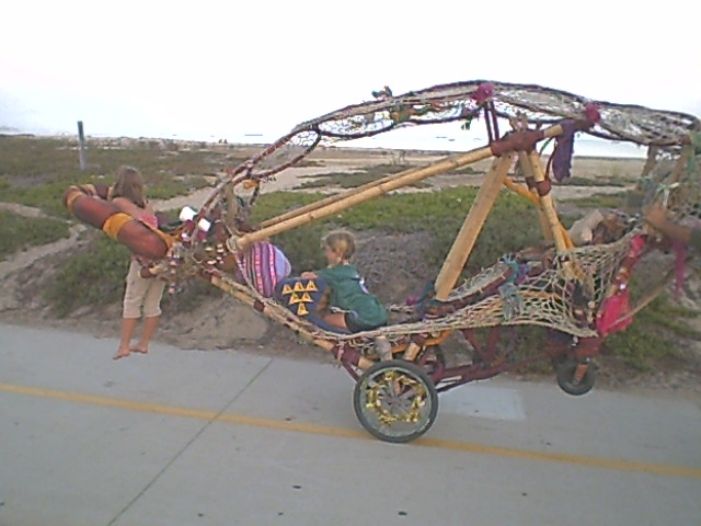 This design is stable, easy to steer (could incorporate a TAIL FIN!), and is able to come to a quick stop, even when loaded with four adults.